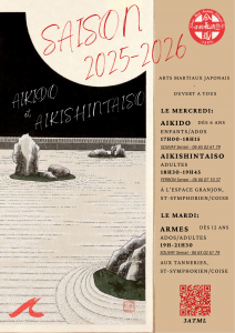 – Aikishintaiso (adultes) mercredi de 18h30 à 19h45 au dojo de l’espace Granjon, 361 bd du Stade